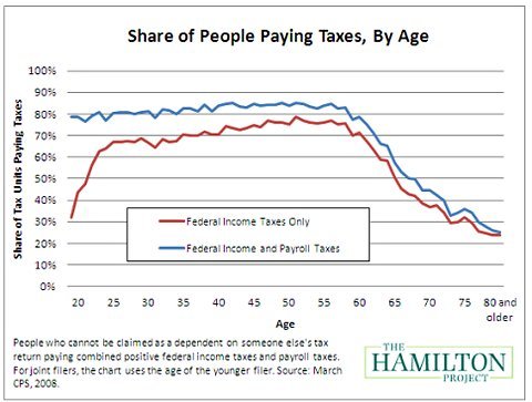 We have more people who don’t pay taxes because we have more old people living off savings and the Social Security benefits that they paid into. They aren’t mooching. They are consuming that which they contributed before. This doesn’t go along with the whole Ayn Rand moocher/looter versus job creator meme the right is clinging to but it happens to be reality. Fact are stubborn things.