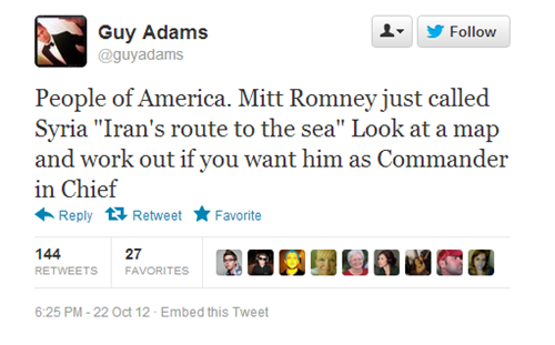 Categorized as politics, Uncategorized Tagged 2012, iran, Romney, syria