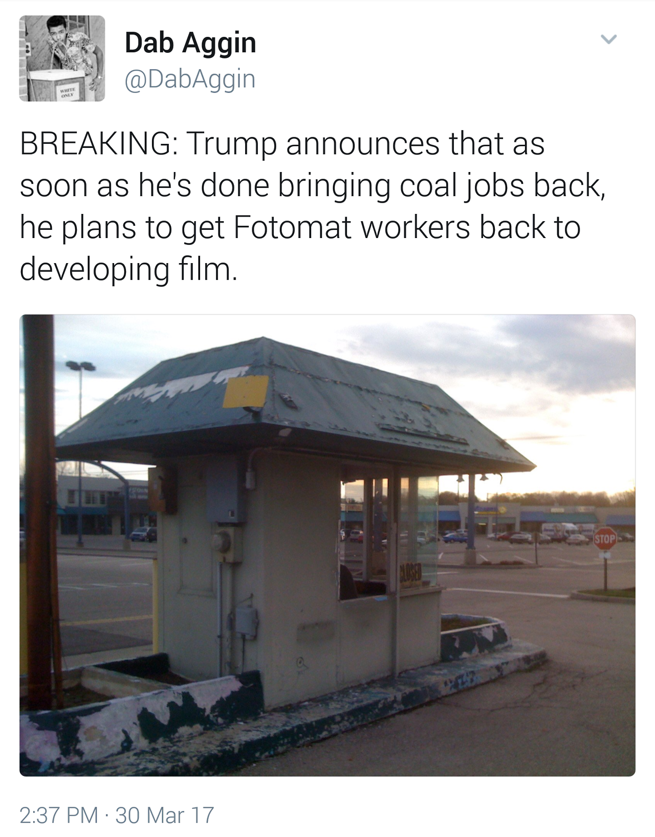 Untitled Remember fotomat? By Stable Genius I am the very model of a Stable Genius Liberal. View all of Stable Genius's posts.
