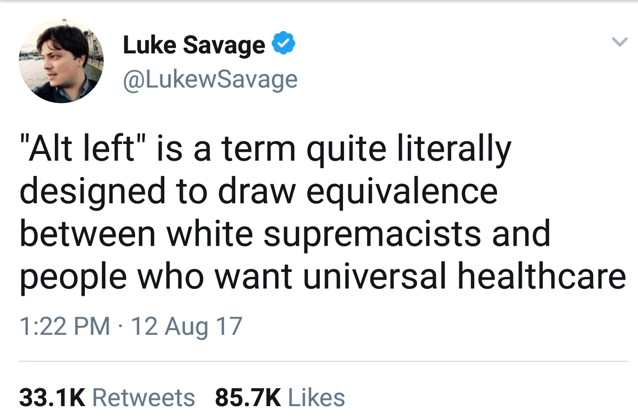 Alt left isn’t a thing. Much like identity politics and political correctness, the right will try to use the label to shut down discussion.